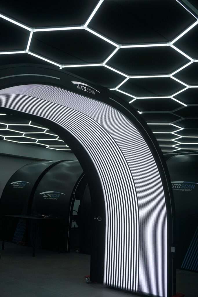 Der Autoscan-Bogen besteht aus einem Aluminiumgehäuse mit superhellen LEDs, die für eine optimale Ausleuchtung der Fahrzeugoberfläche sorgen. Ein spezielles Streifenmuster gewährleistet einen optimalen Kontrast, um selbst kleinste Beschädigungen digital zu erkennen.